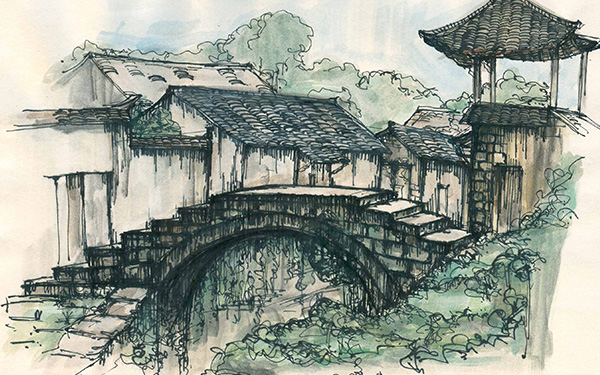 A landscape drawings in chinese villages